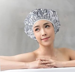 Gorro metalizado reutilizable, ideal para potenciar tratamientos capilares con calor.