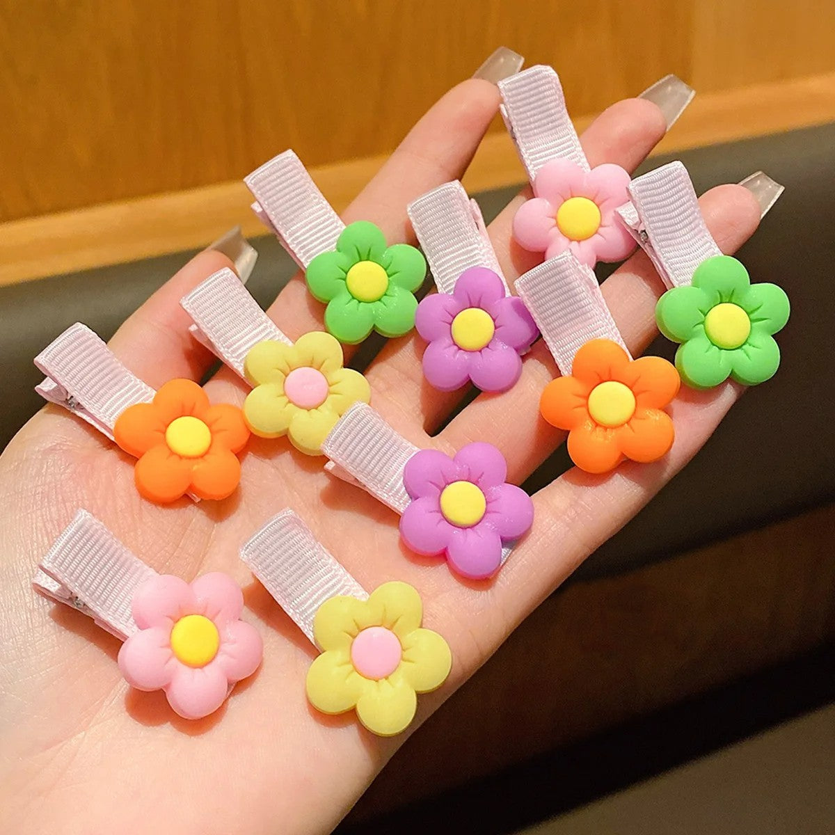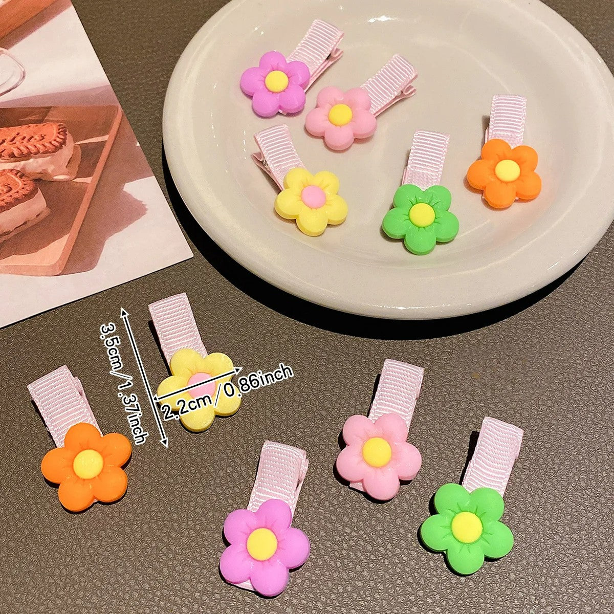 Hebillas con diseño de flor, delicadas y coloridas para peinados creativos y femeninos.